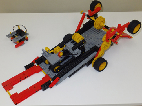 車が転車台に入り、車のモーターで転車台を回転させ、任意の位置で転車台を止め車を転車台から出すことができます。このロボットの構想は早くから思いついていた様ですが