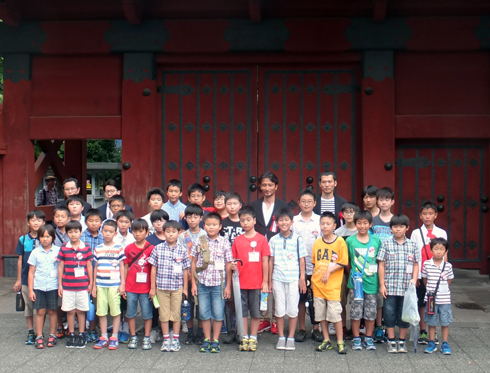赤門前にて全員で記念撮影 |