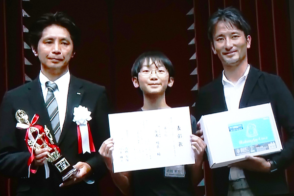 創作部門で大本君・中村君、レース部門で宇津君です。それぞれ、寸暇を惜しんで製作と練習に頑張りました!